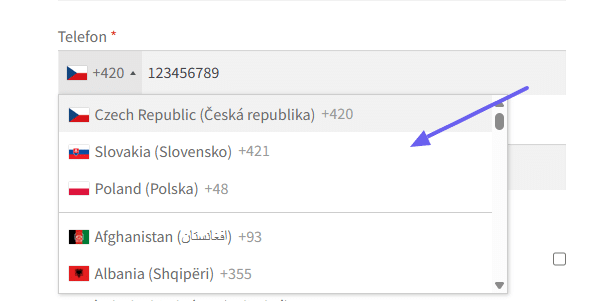 U pole v pokladně se nyní zobrazí předvolba i s příslušnou vlajkou. Zákazníci mohou vybírat předvolby z roletky. K dispozici jsou předvolby pro všechny země světa.