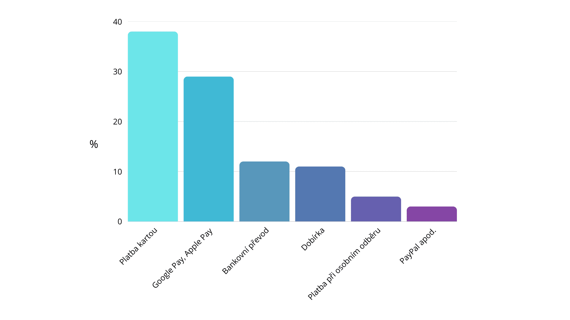 Zásadní je i další číslo: 18 % zákazníků nedokončí nákup, pokud v pokladně nenajdou svou oblíbenou platební metodu. To má přímý vliv na míru opuštění košíku i celkové tržby.