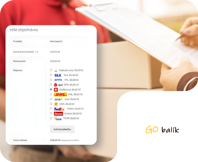 Propojte svůj WooCommerce e-shop s online přepravní službou GO balík a odesílejte výhodně. Služba GO balík umožňuje odesílat na adresu zákazníka, na výdejní místa i do boxů s řadou dopravců působících v Česku i v dalších evropských zemích.