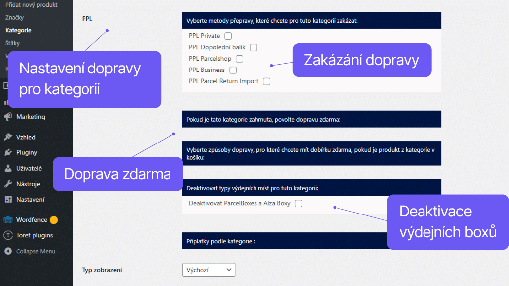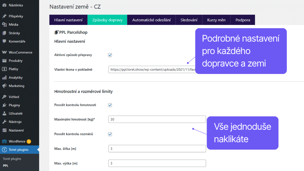 Plugin PPL umožňuje nastavit možnosti dopravy na míru e-shopu. Ceny, podmínky, příplatky, dobírku i dopravu zdarma jednoduše naklikáte v administraci.
